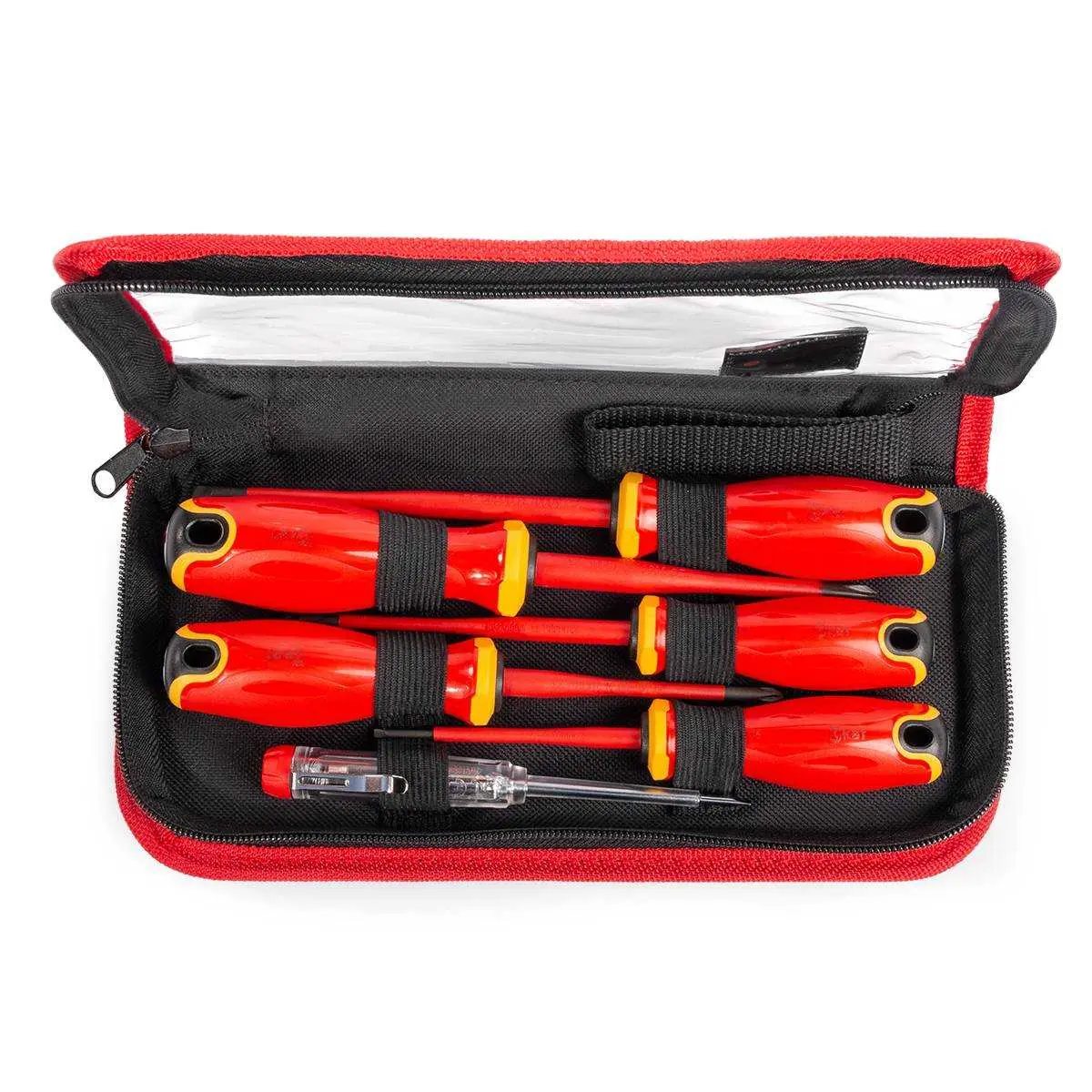 отверстие для подвешивания/ маркировка профиля на торце рукоятки/ рукоятка с защитой от скатывания/ для работ под напряжением до 1000В/ многокомпонентная нескользящая рукоятка/ намагниченные наконечники |