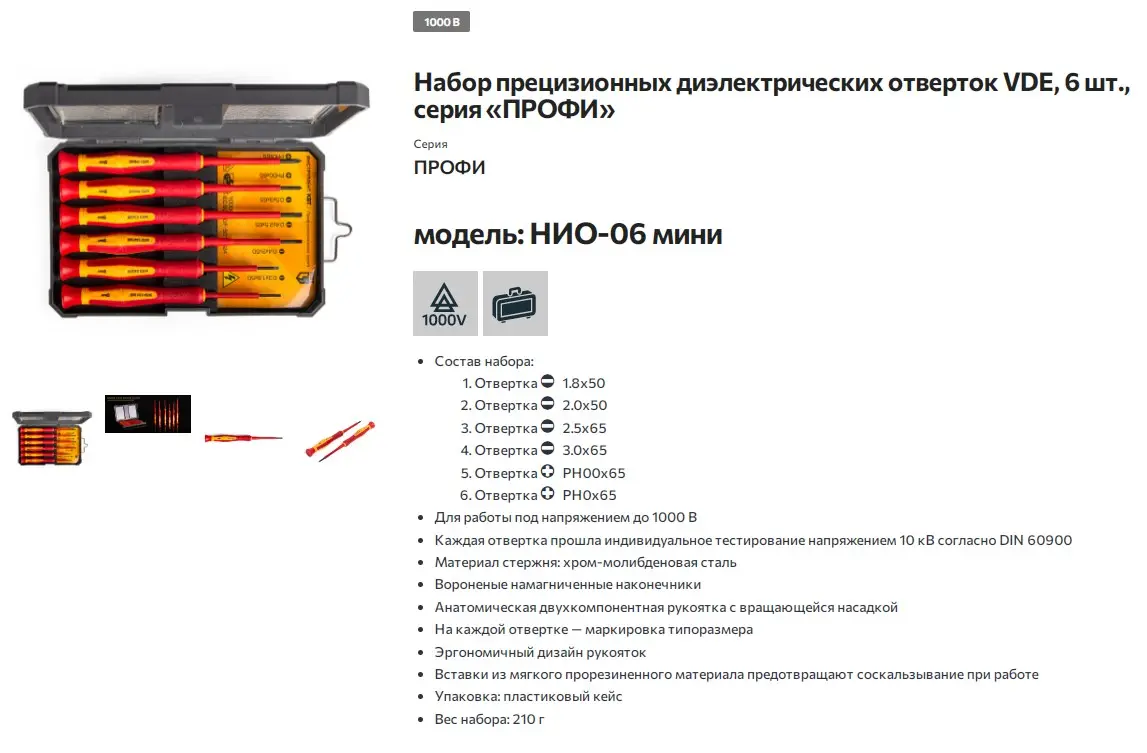 НИО-06 мини Набор прецизионных диэлектрических отверток VDE, 6 шт., серия «ПРОФИ»