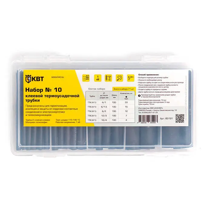| Наименование набора | Состав набора | Длина (мм) | Количество и цвет трубок в наборе (шт) |