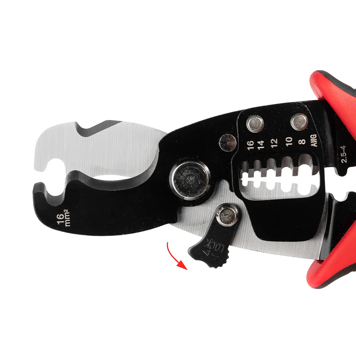 - Специальная выемка на лезвиях ножниц для снятия изоляции с проводов сечением 16 мм²
