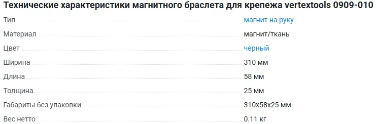 Крепится на запястье любого размера. Уменьшает вероятность потери мелких деталей. Магнит притягивает мелкий крепеж, биты, метизы, иголки и т.п.