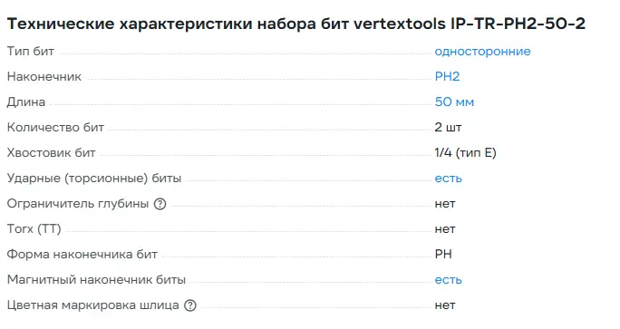 НАБОР БИТ IMPACT PH2X50 2шт. (1/ 50/ 400),VERTEXTOOLS