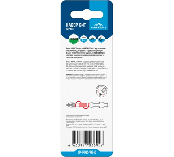 НАБОР БИТ IMPACT PH2X90 2шт. (1/ 50/ 250),VERTEXTOOLS