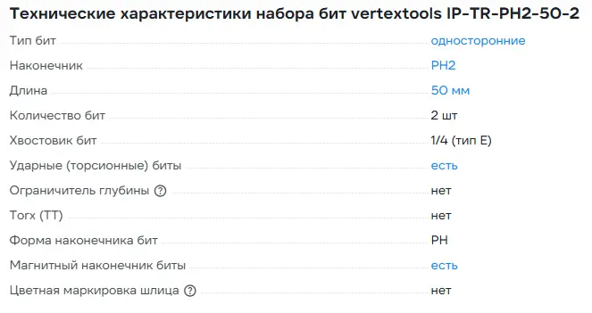 НАБОР БИТ IMPACT TORSION PH2X50 2 шт. (1/ 50/ 400),VERTEXTOOLS
