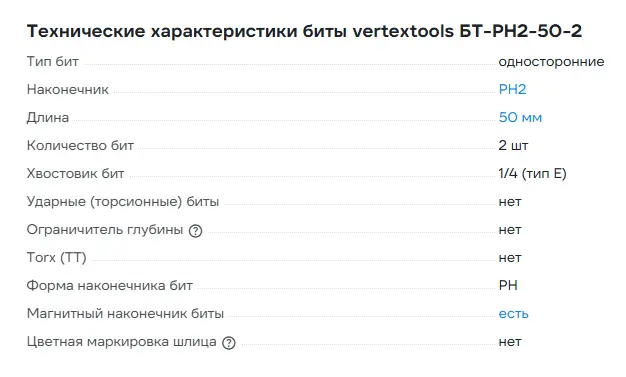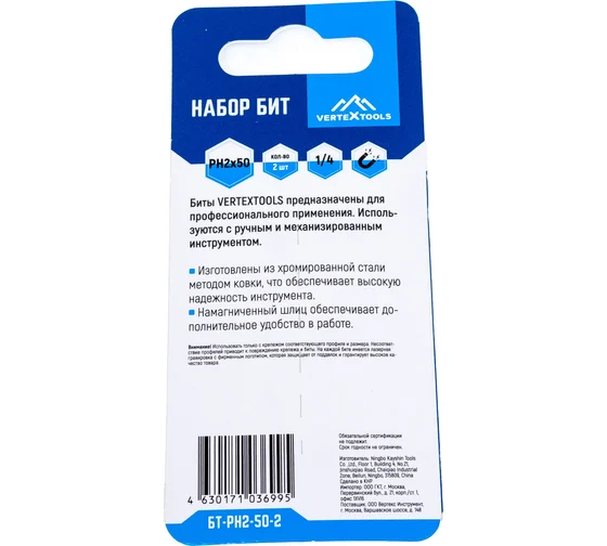 НАБОР БИТ PH2X50 2шт. VERTEXTOOLS