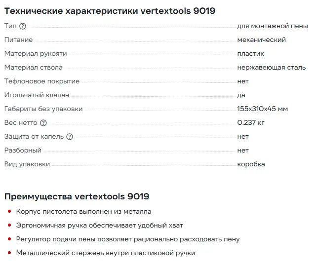Пистолет для монтажной пены vertextools металлический 9019 предназначен для герметизации стыков и щелей во время ремонтных работ.