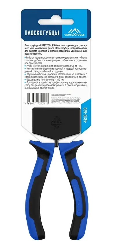 Плоскогубцы vertextools 160мм 4210-160