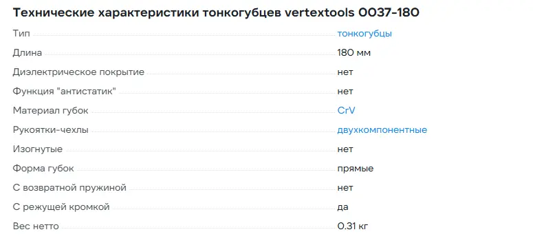 Тонкогубцы vertextools ПРОФИ 180 мм 0037-180