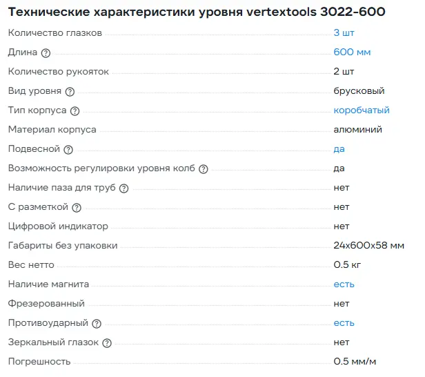Уровень оснащен тремя акриловыми глазками, два из них (вертикальный и горизонтальный) жестко зафиксированы, а третий, поворотный, позволяет измерять предварительно выставив на нем нужный угол. Присутствует возможность ручной калибровки уровня.