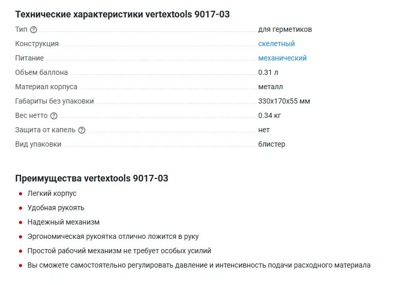 Пистолет для герметика vertextools, 225 мм, скелет 2 мм 9017-03 предназначен для нанесения герметика при выполнении строительных и ремонтных работ. Позволяет точно и равномерно распределить расходный материал в различных отверстиях: проемах, щелях, трещинах, стыках и прочих.