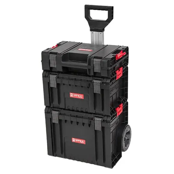 Это передвижной ящик на колесах с телескопической алюминиевой ручкой, который также является основой новой, мультимодульной и самой компактной линией PRO. Ящик имеет большие колеса с резиновым покрытием, установленные на металлической оси. Кроме того, безопасность транспортируемого инструмента обеспечивается прочным крепежом и боковыми защелками из прочного полиамида. Кульминацией всего этого является водонепроницаемая и пыленепроницаемая конструкция, основанная на гибком уплотнителе, установленном в крышке.