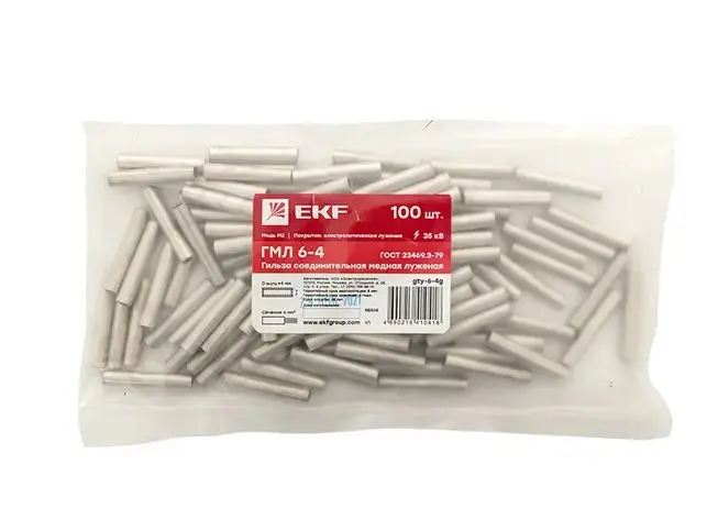 Гильзы медные луженые ГМЛ ГОСТ EKF PROxima используются для соединения жил проводов и кабелей посредством опрессовки. Защитное покрытие предохраняет гильзу от коррозии и окисления.