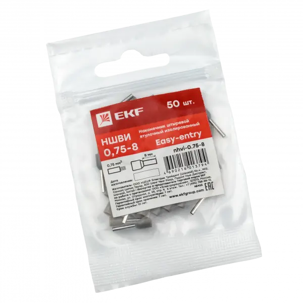 Наконечник штыревой втулочный изолированный НШвИ 0,75-8 (50шт.) EKF PROxima