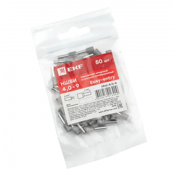 Наконечник штыревой втулочный изолированный НШвИ 4,0-9 (50шт.) EKF PROxima