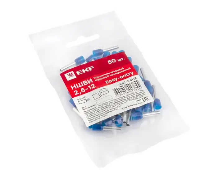 Одинарные и двойные втулочные наконечники (НШвИ и НШвИ2) EKF PROxima являются единственными специально разработанными наконечниками под опрессовку, которые полностью заменяют обязательный процесс облуживания многопроволочных медных проводов (типа ПВ-3, ПВС и т.п.) при монтаже различного электрооборудования. Втулочные наконечники состоят из медной луженой трубки, один конец которой развальцован для облегчения ввода многожильного провода и изолирующей манжеты из полипропилена.
