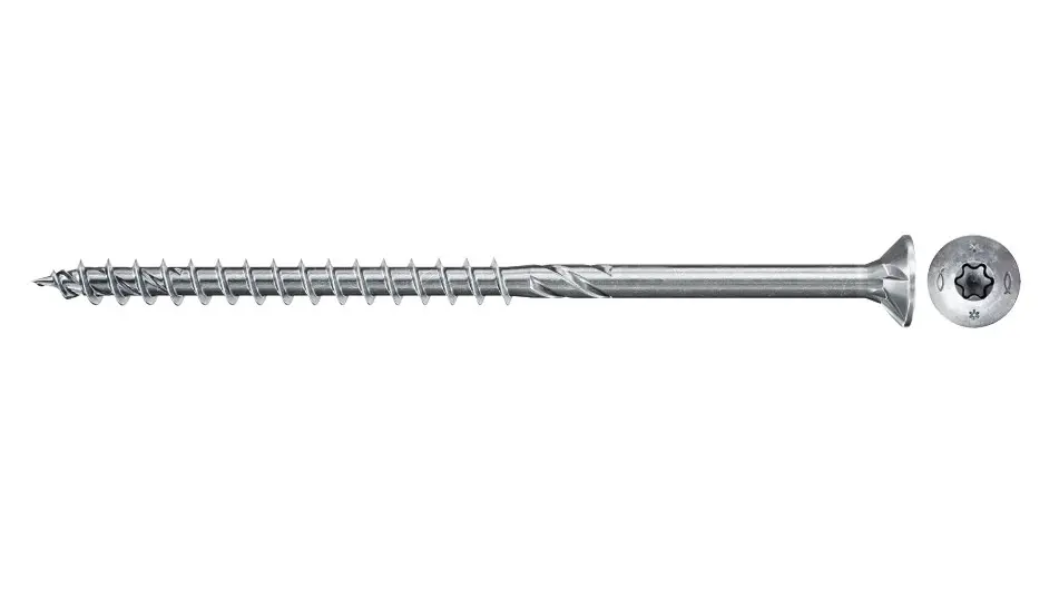 Винт подходит для крепления несущих компонентов в соединениях из древесины с покрытием, лиственных пород, хвойных пород и бруса.