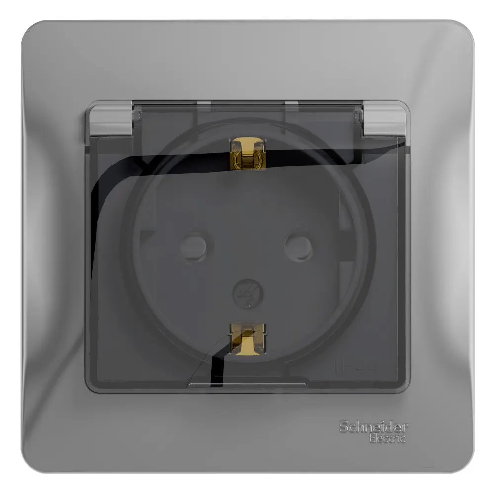 Розетка с заземлением со шторками с крышкой, 16А, IP44, в сборе, АЛЮМИНИЙ