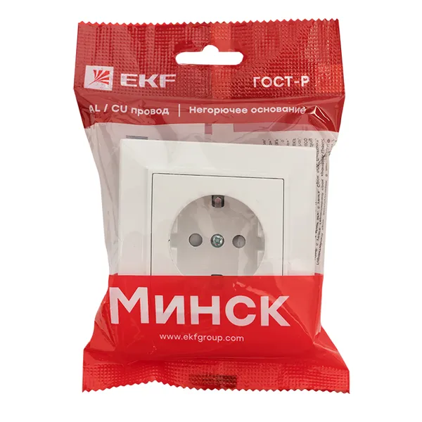 Минск Розетка 1-местная СП с/з 16А белая с защ. штор. EKF