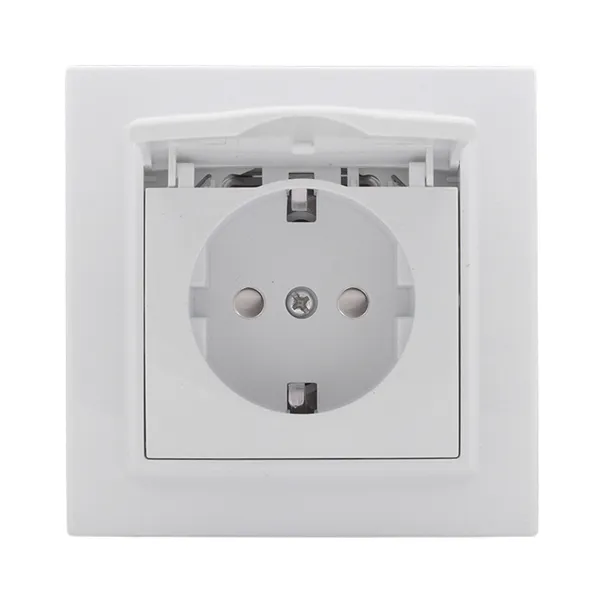 Минск Розетка 1-местная СП с/з с крышкой 16А белая с защ. штор. EKF