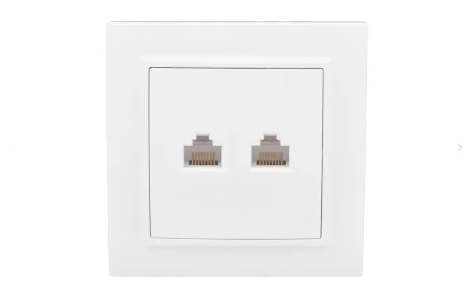 Розетка двойная компьютерная RJ45+RJ45 EKF серии Минск станет отличным решением для квартиры и загородного дома при подключении устройств к сети Интернет. Компактный механизм упрощает монтаж изделия. Зафиксированные распорные лапки надежно фиксируют устройство в монтажной коробке.