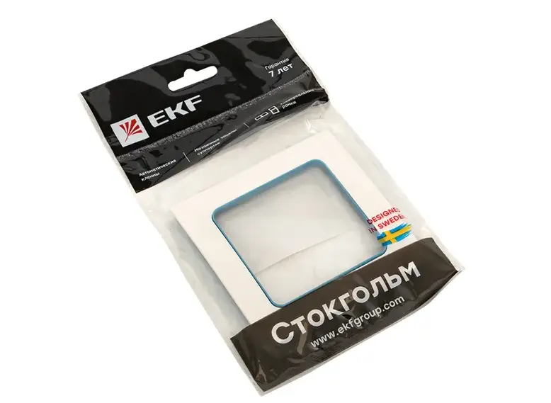Стокгольм Рамка 1-местная белая с линией цвета синий EKF PROxima