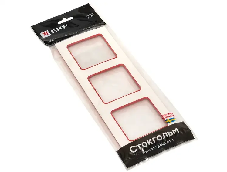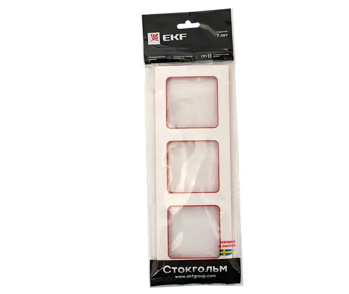 Стокгольм Рамка 3-местная белая с линией цвета красный EKF PROxima