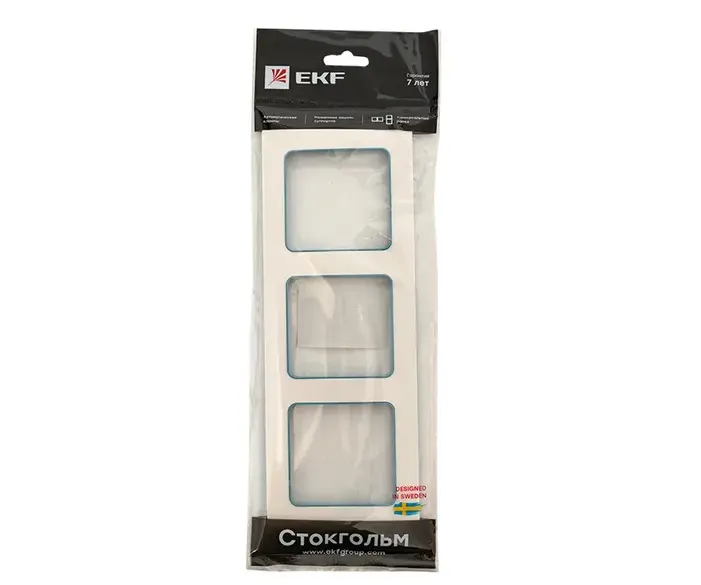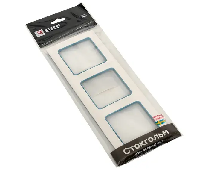 Стокгольм Рамка 3-местная белая с линией цвета синий EKF PROxima