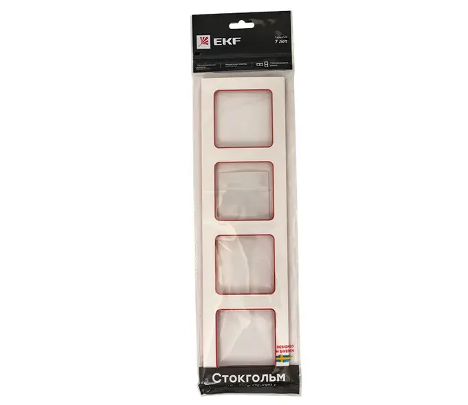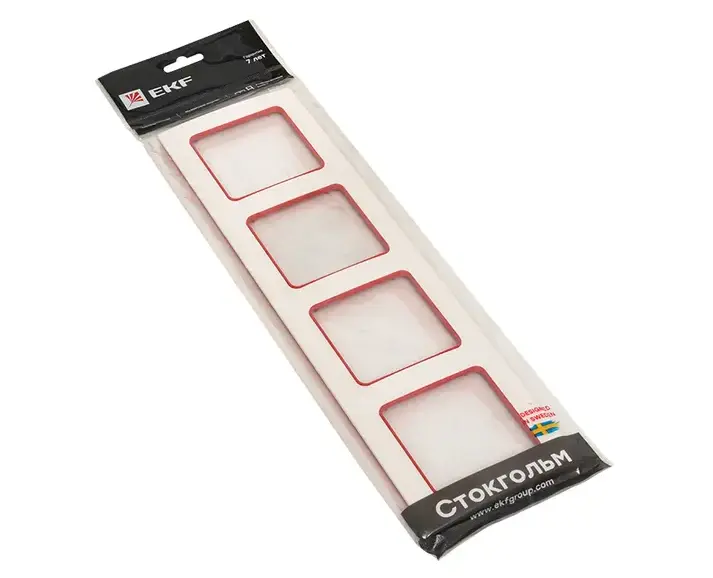 Стокгольм Рамка 4-местная белая с линией цвета красный EKF PROxima