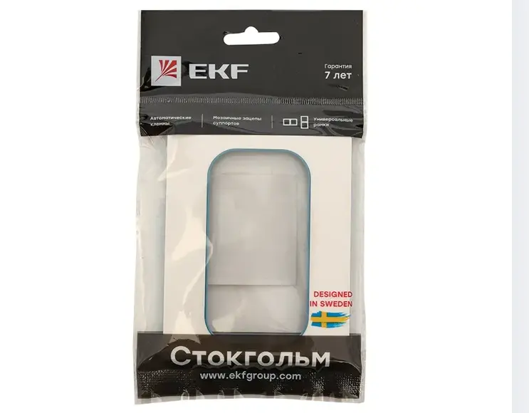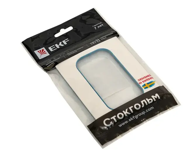 Стокгольм Рамка для розетки 2-местная белая с линией цвета синий EKF PROxima