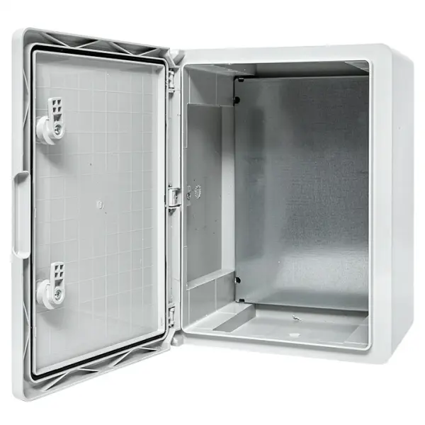 Щиты пластиковые ЩМП-П IP65 навесного исполнения с монтажной панелью предназначены для установки модульного и силового электрооборудования для сборки щитов автоматизации, распределения и управления. Щиты изготовлены из ударопрочного АБС-пластика и обеспечивают надежную защиту установленного оборудования. Степень защиты IP65 предотвращает проникновение пыли и влаги, обеспечивая безопасное функционирование внутренних компонентов шкафа. Поставляются с двумя типами дверей: глухой и прозрачной.