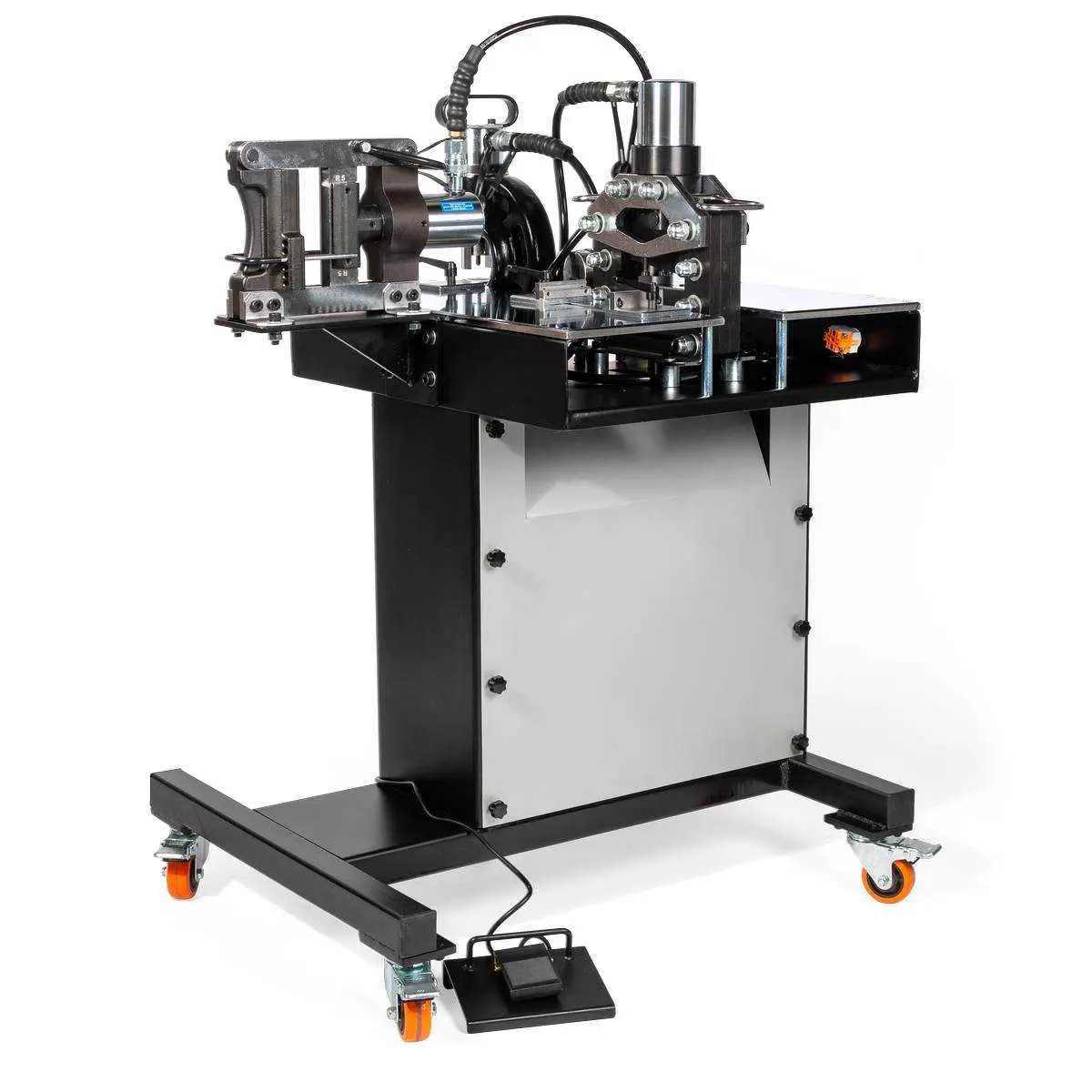 N-образный профиль гибки/ колеса для перемещения инструмента/ пуансоны в комлекте/ 3 в 1: гибка, резка и перфорация шин/ перфоформы в комплекте/ электрогидравлическая помпа в комплекте/ лазерный указатель/ гибка на плоскость/ шкала индикации угла гибки/ L-образный профиль гибки |