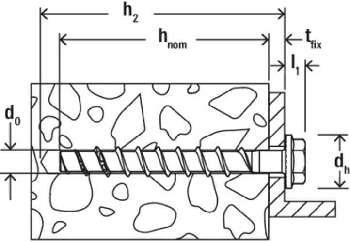| Глубина ввинчивания в зависимости от толщины крепления | 50/5 мм |