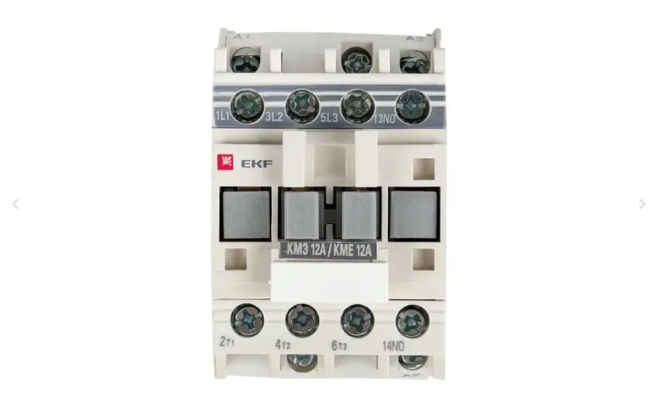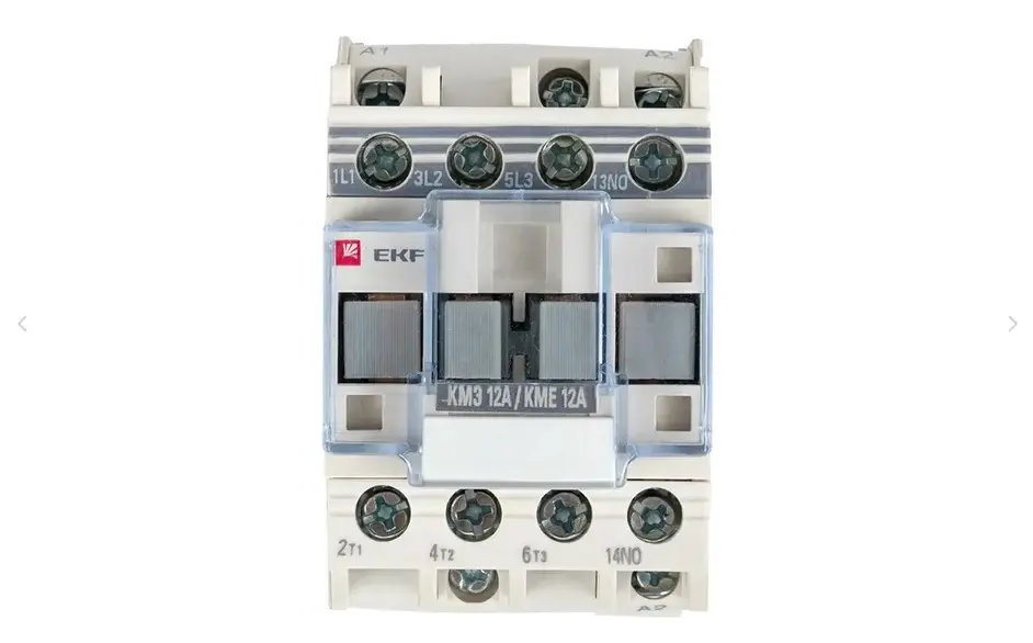 Контакторы КМЭ EKF PROxima состоят из корпуса, закрепленных в нем неподвижных контактов, подвижных контактов, которые закреплены в подвижной части магнитной системы. Неподвижная часть магнитной системы закреплена жестко в корпусе КМЭ. Пружина препятствует смыканию контактов. При подаче напряжения на катушку управления в магнитной системе контактора возникает магнитное поле, которое, преодолевая сопротивление пружины, смыкает магнитную систему и замыкает контакты. При отключении напряжения с катушки управления пружина размыкает контакты. Возможна коммутация алюминиевым и медным проводом. Основное назначение контактора КМЭ – частые дистанционные включения и выключения силовых электрических цепей в нормальном режиме работы.