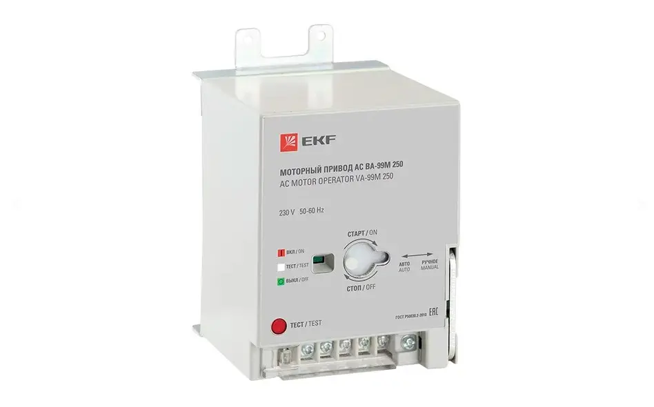 Моторный привод ВА-99М EKF. Предназначен для включения/выключения автоматических выключателей. Механизм с взводящим приводом автоматически подготавливает пружинную систему. Запасенная в процессе отключения автомата энергия затем используется для его включения.