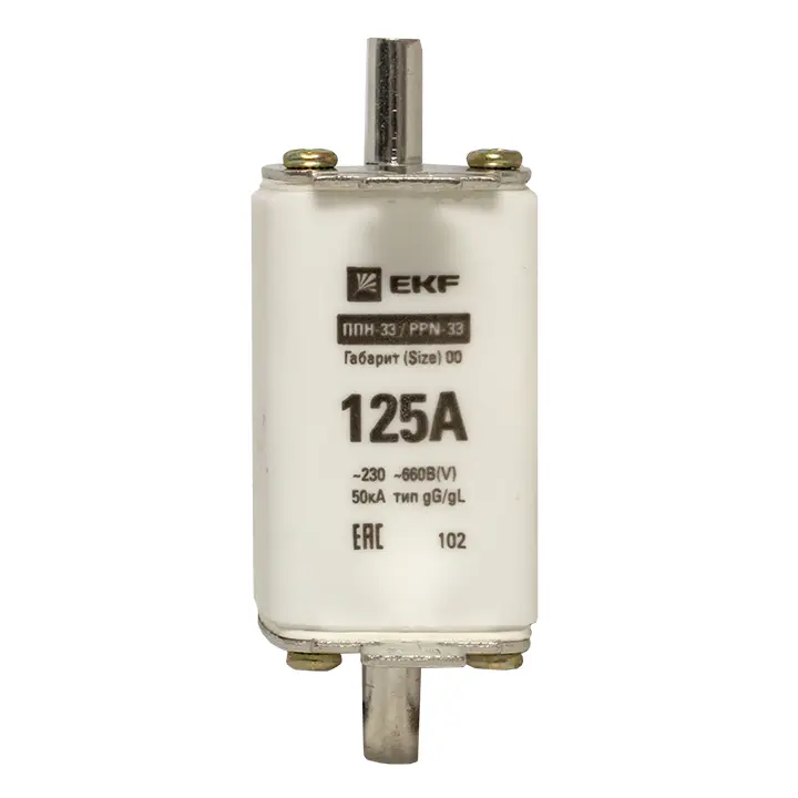 Артикул: fus-33/160/125Предохранители плавкие ППН EKF PROxima предназначаются для защиты кабельных линий и промышленных электроустановок от токов перегрузки и короткого замыкания. Предохранители применяются в электрических сетях переменного тока частотой 50 Гц с напряжением до 660 В и устанавливаются в низковольтные комплектные устройства, например, в распределительные панели ЩО-70, вводно-распределительные устройства ВРУ1, шкафы распределительные силовые ШРС1 и т. п.