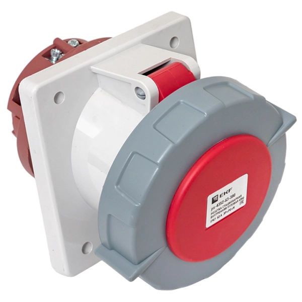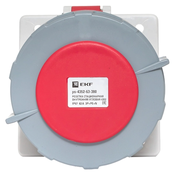Розетка стационарная внутренняя угловая 4352 3Р+РЕ+N 63А 380В IP67 EKF PROxima