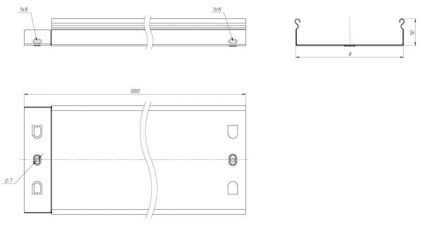 Лоток неперфорированный 50х50х3000-0,55 мм EKF