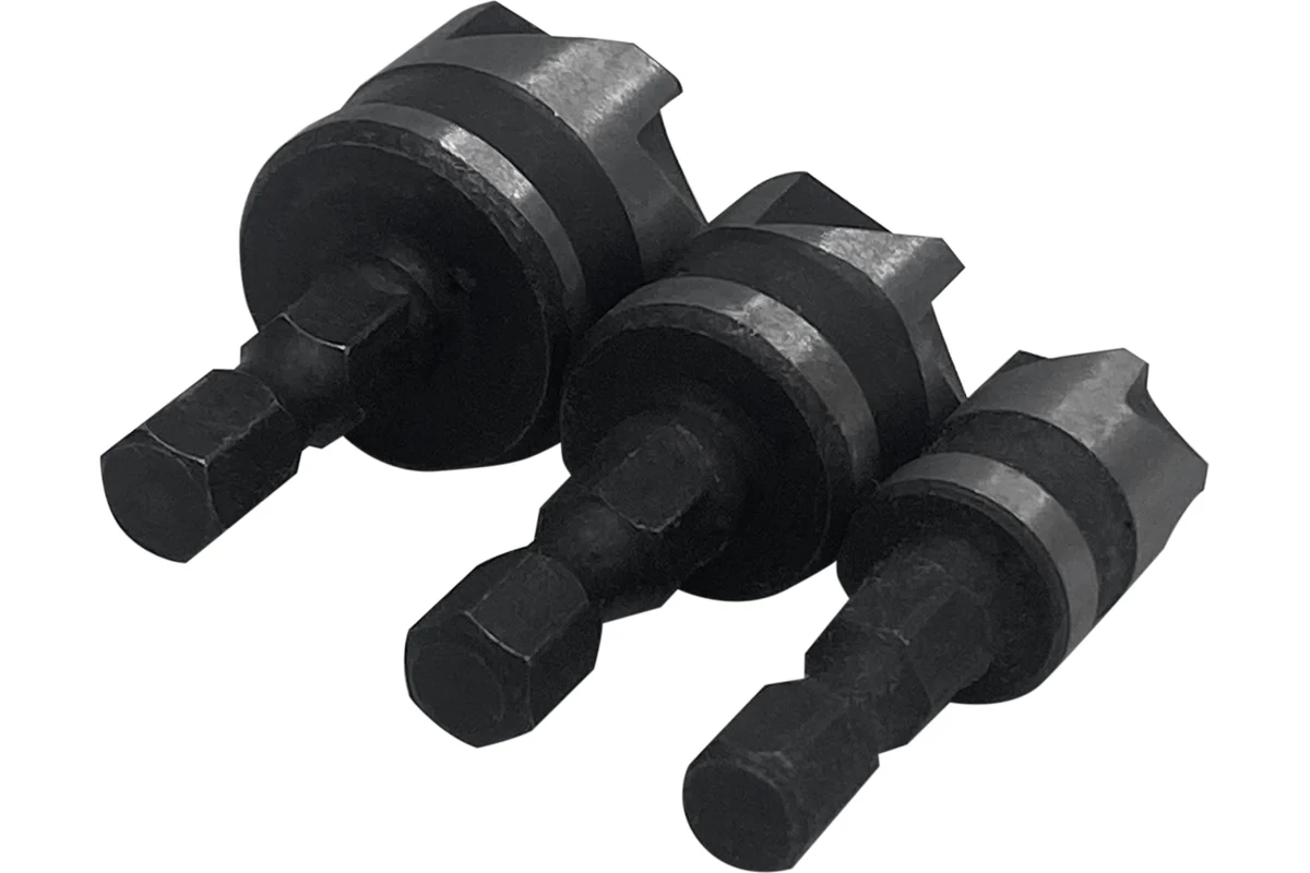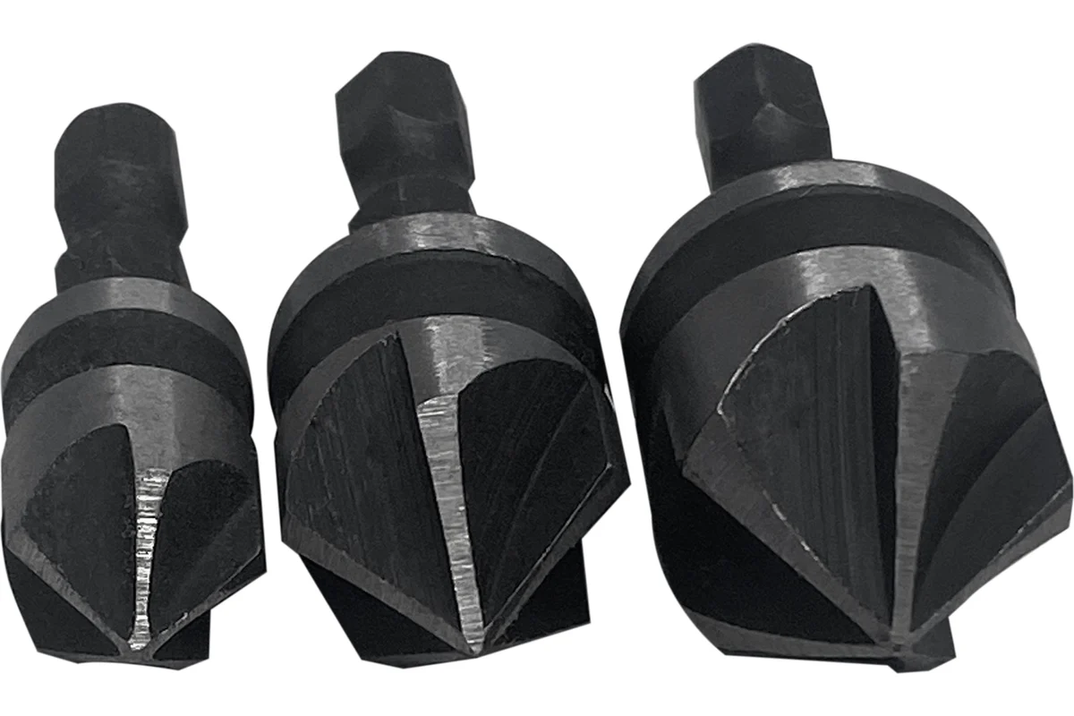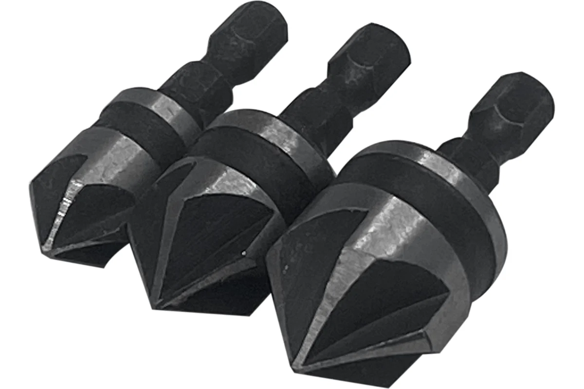 Набор зенкеров по дереву 3 шт, 12 мм, 16 мм, 19 мм vertextools 0987-12-16-19 предназначен для зенкования конических отверстий в изделиях из алюминия, древесины и пластика. Применяется при работе с электродрелями и на сверлильных станках.