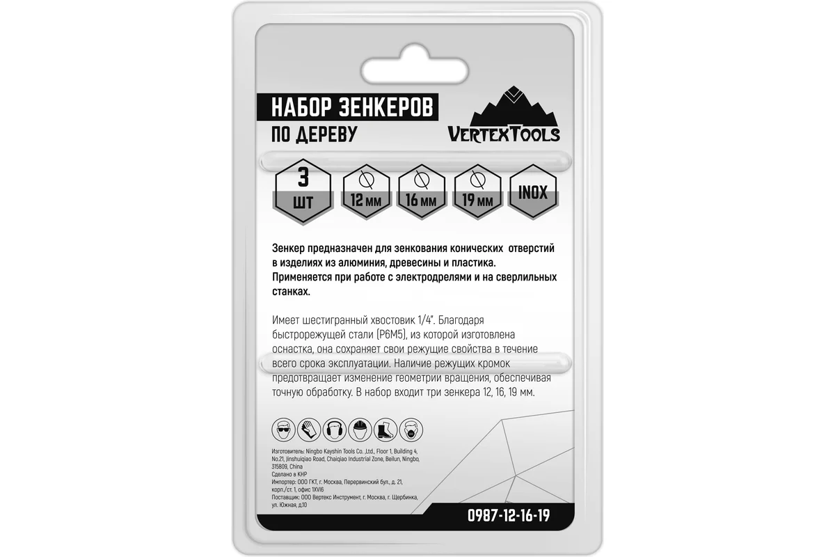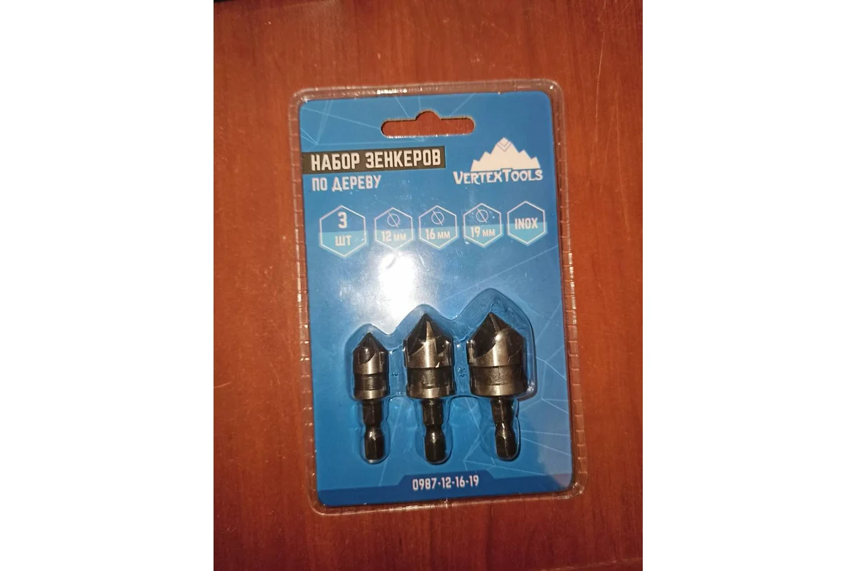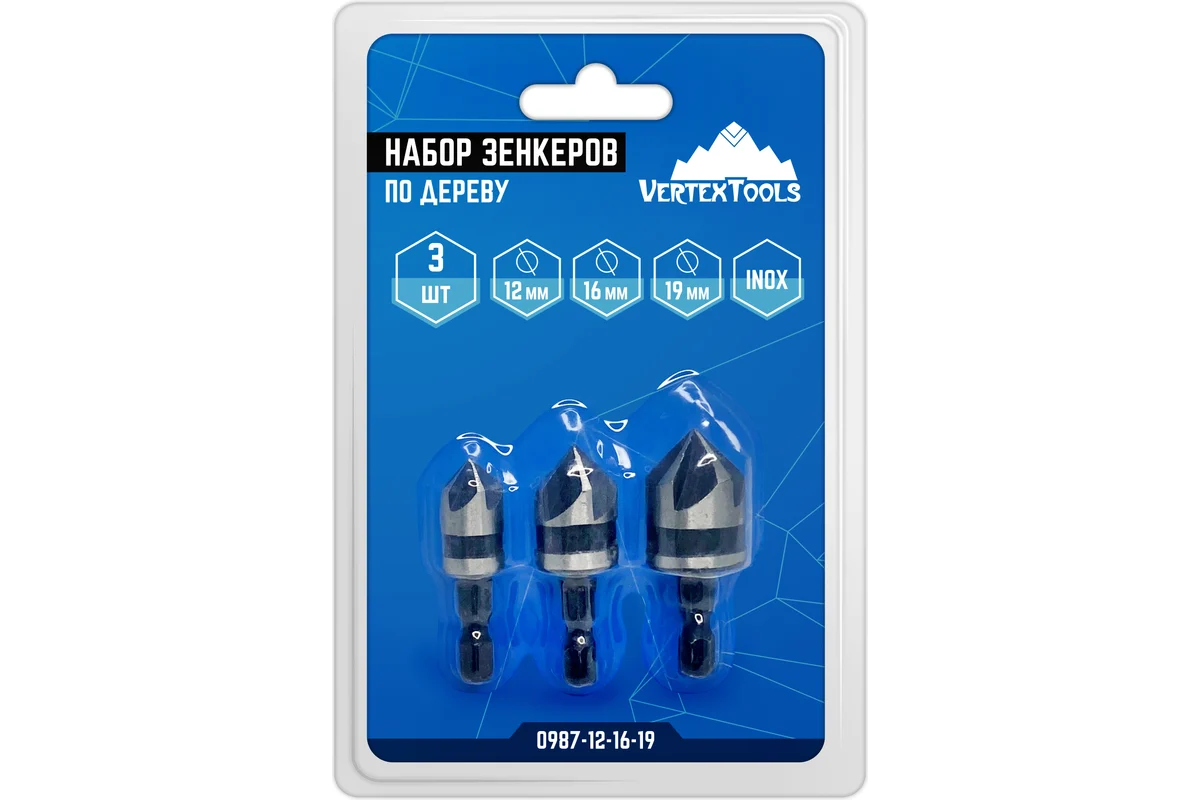 НАБОР ЗЕНКЕРОВ ПО ДЕРЕВУ 3шт. 12мм, 16мм, 19мм (1/ 25/ 100),VERTEXTOOLS