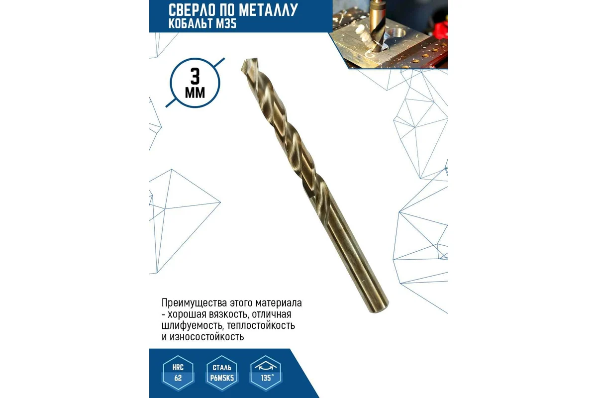 Оснастка изготовлена из высококачественной быстрорежущей стали легированной кобальтом Р6М5К5/М35 (6% вольфрама, 5% молибдена, 5% кобальта), что обеспечивает высокую жаропрочность сверла и позволяет проводить работы повышенной сложности без охлаждения.