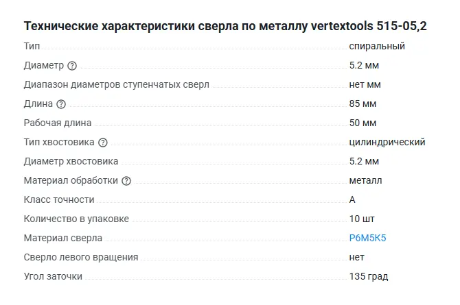 Сверло по металлу vertextools 515-05,2 предназначено для дрелей. Используется для сверления отверстий в металле.