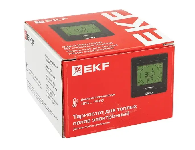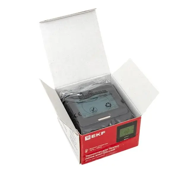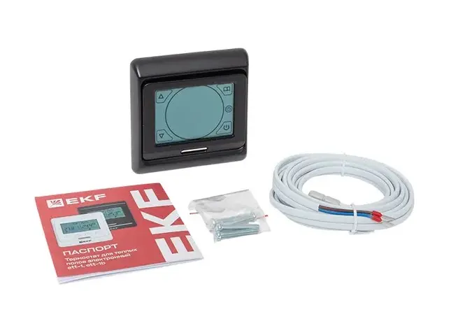 1. Термостат -1 шт. 2. Датчик пола с соединительным проводом (3 м) – 1 шт. 3. Крепежные винты – 2 шт. 4. Паспорт-1 шт.Техническая спецификация