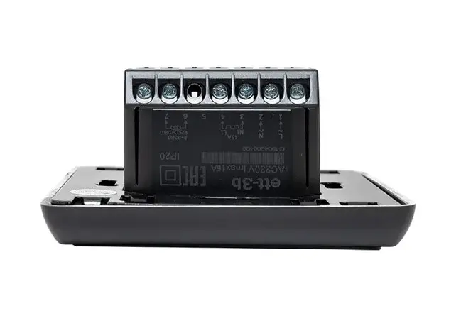 Сенсорные электронные программируемые терморегуляторы серии ett-3 рекомендуются для управления системами электрического и водяного обогрева. Терморегулятор оснащен удобным ЖК-дисплеем на сенсорном управлении. На экране отображаются текущие параметры функционирования прибора, календарь и время. Терморегулятор оснащен встроенным и выносным датчиком температуры, он постоянно отслеживает состояние температуры помещения, отдает команды на включение или отключение систем отопления «теплый пол». Предназначен для внутреннего применения и рассчитан на работу при окружающей температуре от -5 до +50 °С. В терморегуляторе предусмотрено сразу три режима функционирования: ручной (команды отдаются пользователем) автоматический и комфортный режим программирования. Функция недельного программирования даёт возможность разделить сутки на шесть периодов и автоматически поддерживать различную температуру в каждом периоде отопительных приборов на неделю.