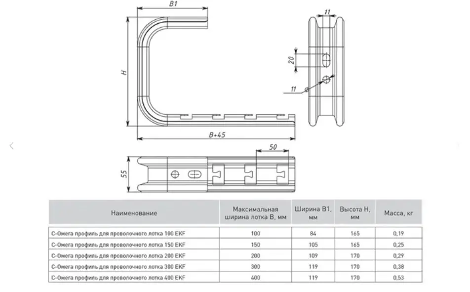 С-Омега профиль для проволочного лотка 100 INOX EKF