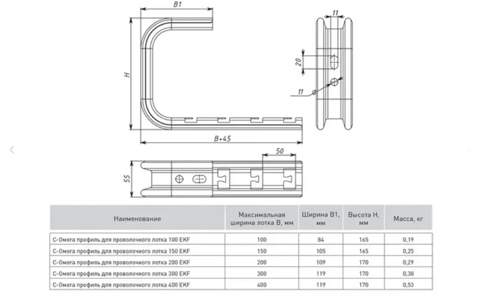 С-Омега профиль для проволочного лотка 400 (1,5 мм) EKF