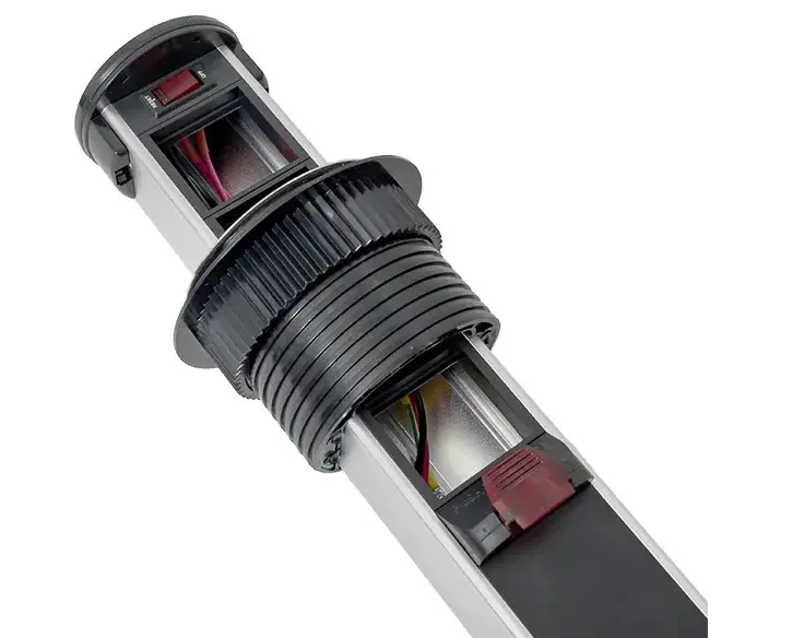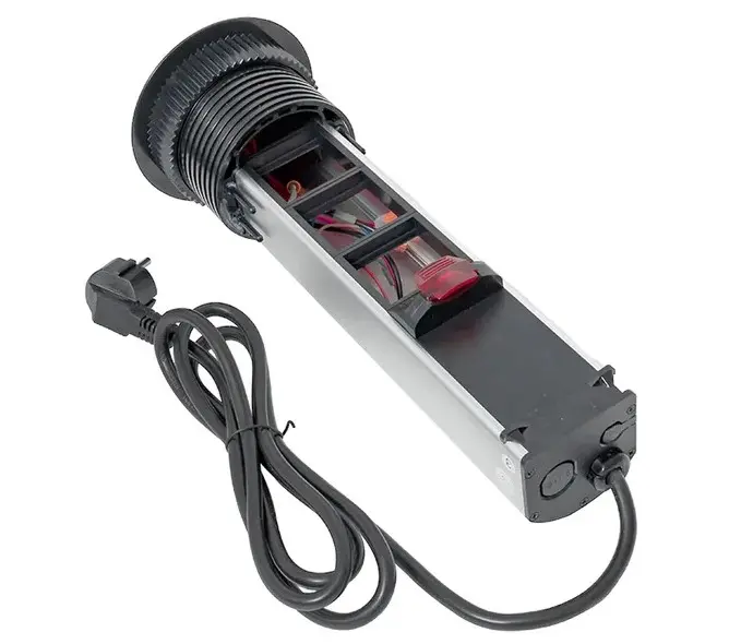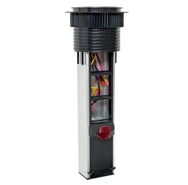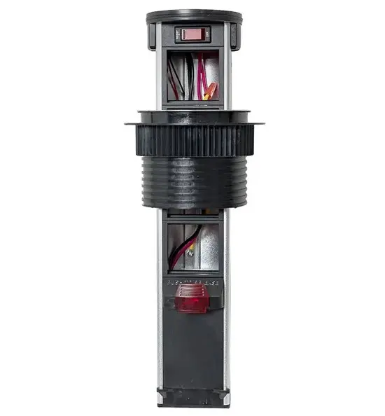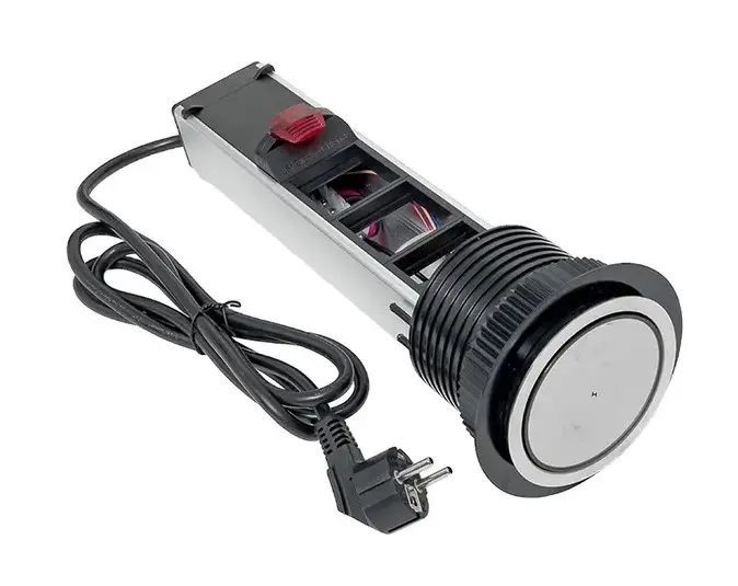 Встраиваемая мини-колонна с беспроводной зарядкой 15 Вт, 8 модулей C-Line. Встраиваемая мини-колонна с беспроводной зарядкой – это изделие цилиндрической формы с ручным выдвижным механизмом, предназначенное для установки ЭУИ стандарта 45х45. Верхняя крышка мини-колонны оснащена беспроводной зарядкой для электронных девайсов. Беспроводное зарядное устройство считывает данные с контроллера питания подключенного девайса и подбирает оптимальные и безопасные выходные параметры тока и напряжения. Изделие поставляется в комплекте с сетевым кабелем питания (2 метра). В нижней крышке колонны предусмотрены 2 дополнительных кабельных ввода. Монтаж производится в предварительно подготовленное отверстие диаметром Ø95-100 мм. Допустимая толщина поверхности стола 10-45 мм.