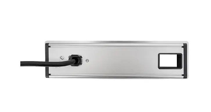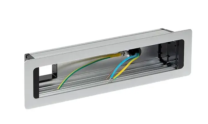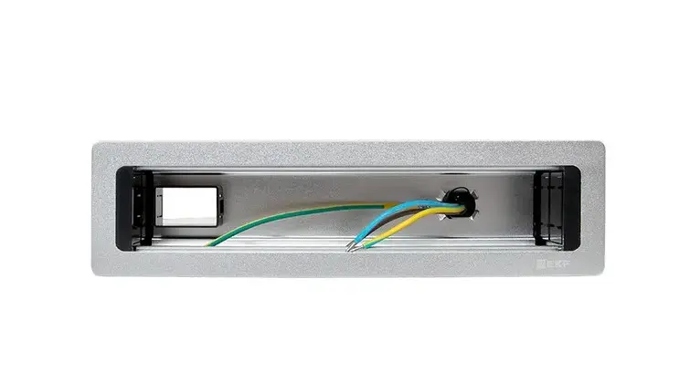 Встраиваемый настольный розеточный блок, 10 модулей, C-Line. Настольный розеточный блок – изделие прямоугольной формы, предназначенное для размещения ЭУИ на уровне поверхности стола. Розеточный блок монтируется в предварительно подготовленное отверстие 241х62 для 10 модулей. Сетевой кабель питания (2 метра) и крепеж в комплекте. На задней стенке розеточного блока предусмотрено дополнительное отверстие для подведения слаботочных кабельных линий.