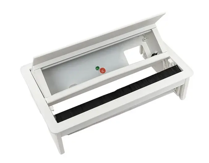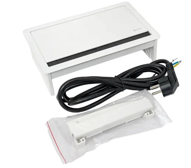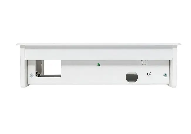Встраиваемый настольный розеточный блок выдвижной, 8 модулей, белый, C-Line. Выдвижной настольный розеточный блок – изделие прямоугольной формы с ручным механизмом плавного закрытия, предназначенное для установки модульных ЭУИ. Монтаж производится в предварительно подготовленное отверстие 235х145 мм. Допустимая толщина поверхности стола 10-45 мм. Сетевой кабель питания (2 метра) и крепеж в комплекте. На задней стенке розеточного блока предусмотрено дополнительное отверстие для подведения слаботочных кабельных линий.