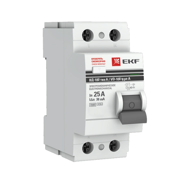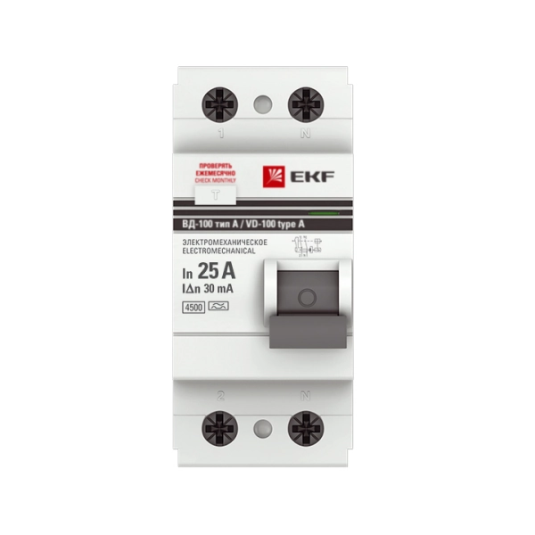 Устройство Защитного Отключения ВД-100 2P 25А/30мА (эл-мех, тип А) EKF PROxima