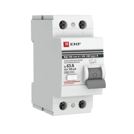 Устройство Защитного Отключения ВД-100 2P 63А/100мА (эл-мех, тип А) EKF PROxima